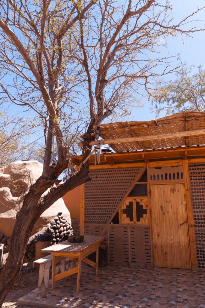 En atacama domos Pujllai Cada domo cobra vida con la energía del sol a través de nuestros paneles solares, demostrando nuestro compromiso con las energías limpia y renovables. nuestro quincho es una obra maestra del reciclaje incorporando botellas de vidrios en un diseño integrando innovación y sustentabilidad. Nuestro diseño y arquitectura única en la zona construidos con la técnica milenaria del super adobe que se asemeja a las rucas y pukaras son un tributo a la arquitectura sostenible y a la armonía con el entorno.